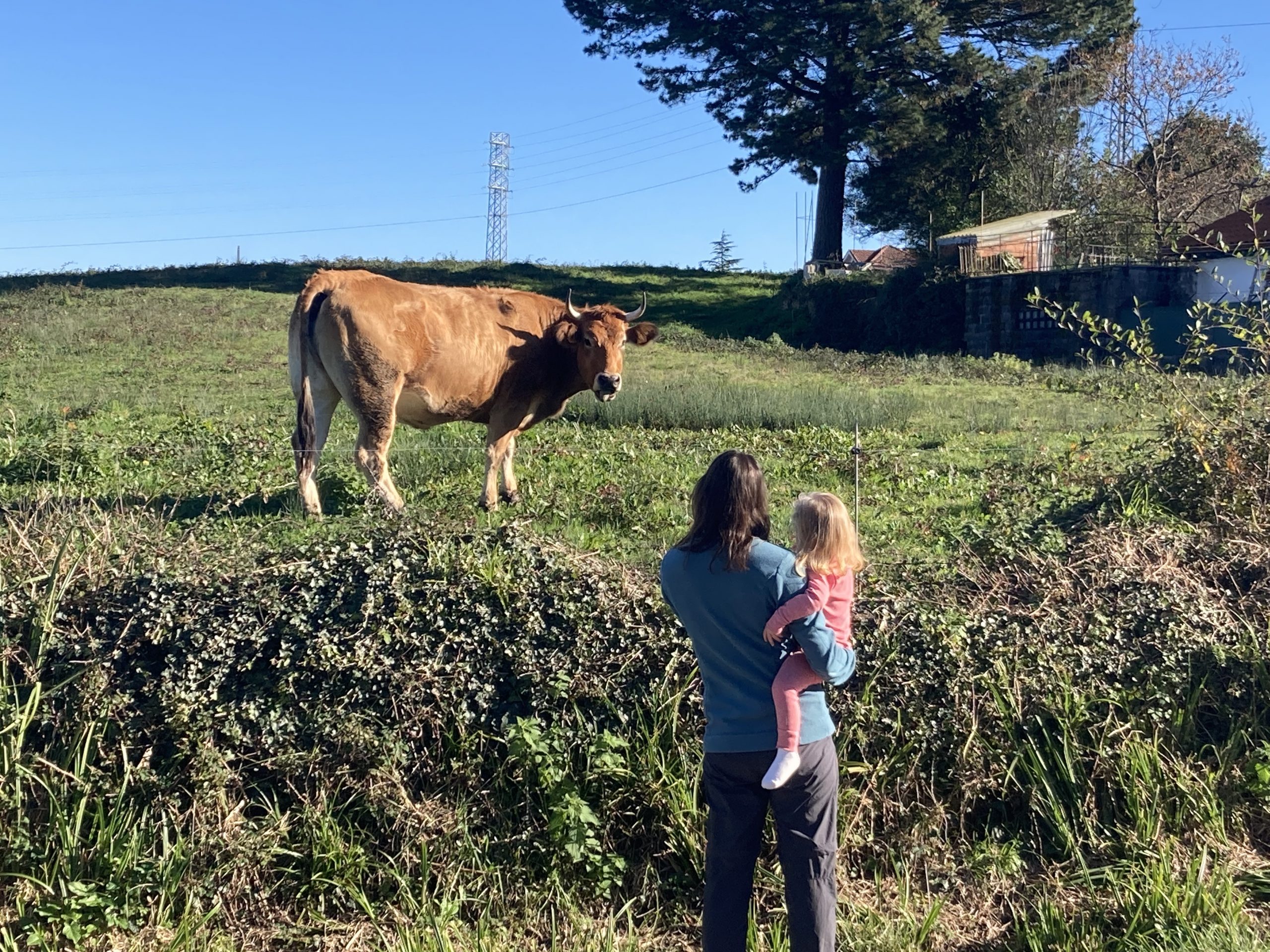 Reconocemos que Mïa tuvo una sobreexposición a las pantallas brutal, pero también tuvo mucha interacción con la naturaleza en nuestro campamento base: vio cómo se enciende y mantiene encendido un fuego, sintió el tacto de un caracol, aprendió a reconocer el canto de un gallo o el rebuznar de un burro asustado por Maia. Vio pastar vacas a pocos metros de ella y tuvo la oportunidad de tocar un caballo…aunque no la aprovechó.